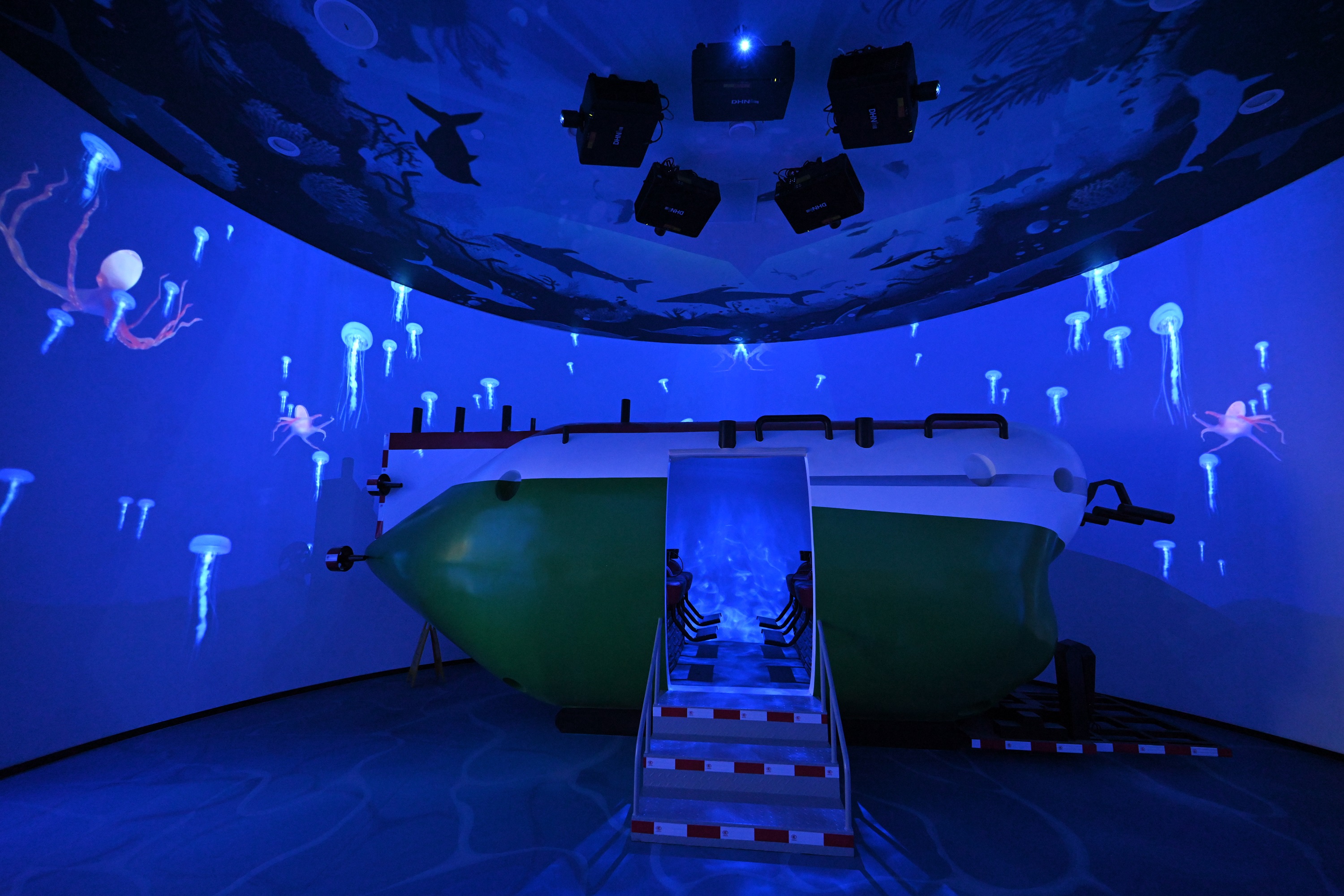 在“梦在深海”区域,魔法境团队打造了极具震撼力的核心展项,旨在寻找那些心怀海洋梦想的深潜小英雄。