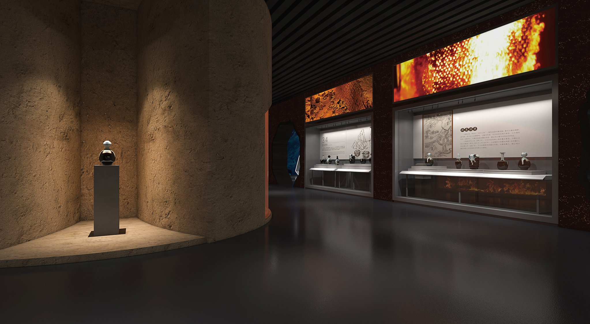 平顶山陶瓷非遗馆以陶瓷文化为主题,打造了一个近2000平米的文化传承空间。凭借多媒体数字技术的创新应用,通过“场景展示非遗”和“数字体验非遗”,重新定义了文化传承与展示的全新模式,成为集文化、艺术、科技精华于一体的多媒体数字展馆典范。