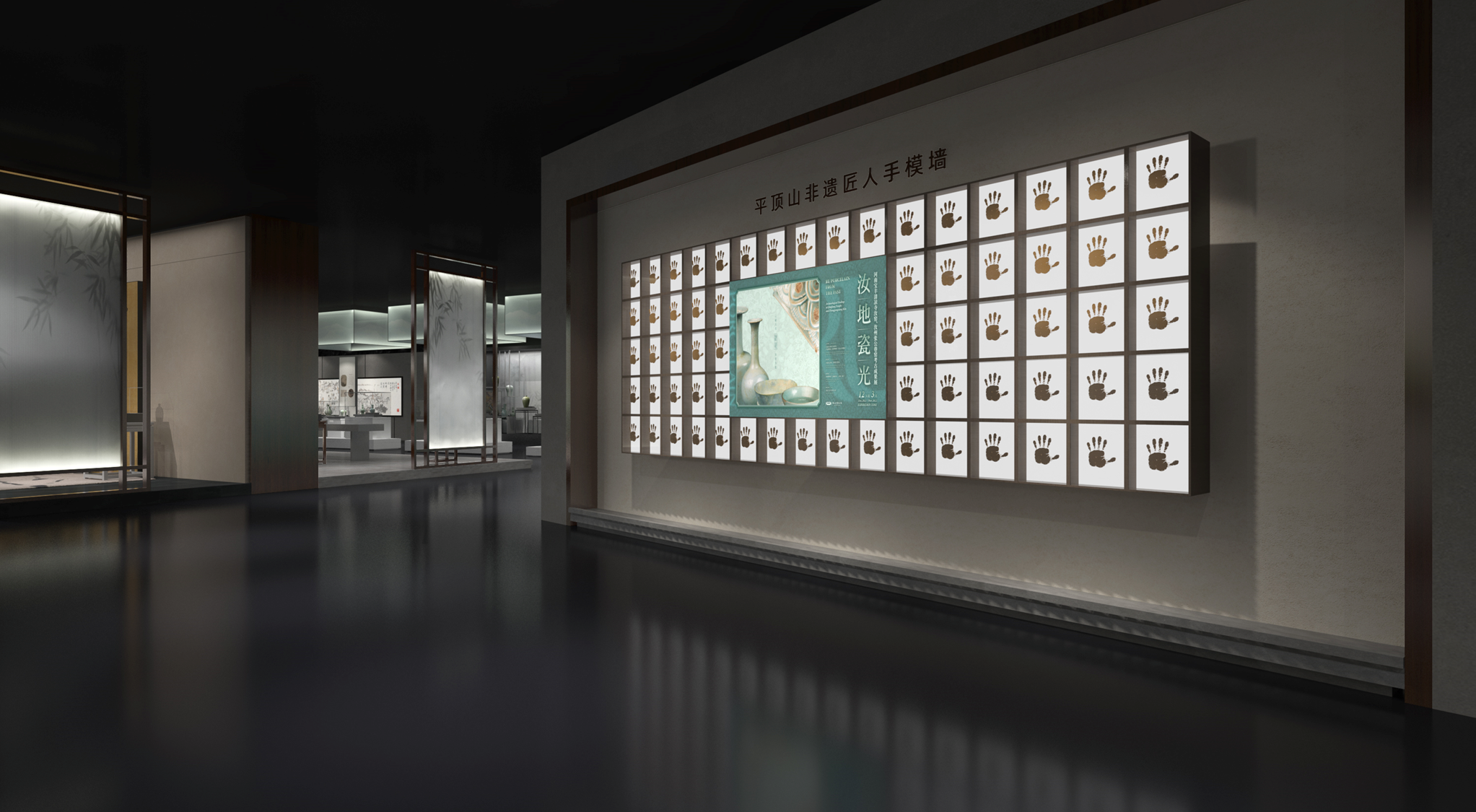 陶土压印的手模,如同岁月的勋章,印证着一代又一代传承人的匠人之心。每个手模印右下方贴心设置对应传承人的介绍二维码,依托数字化优势,可做到内容随时更新,让观众随时能深入了解匠人的传奇历程。
