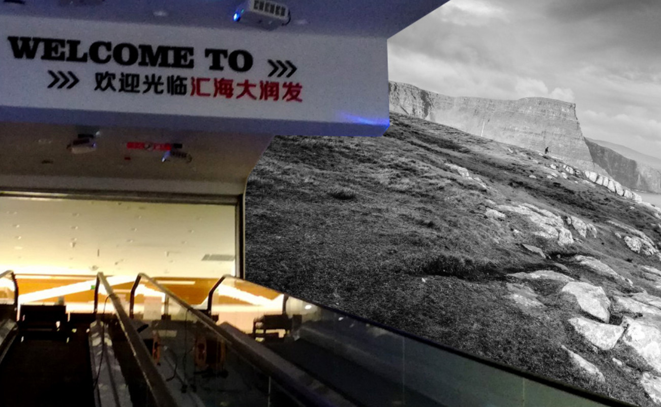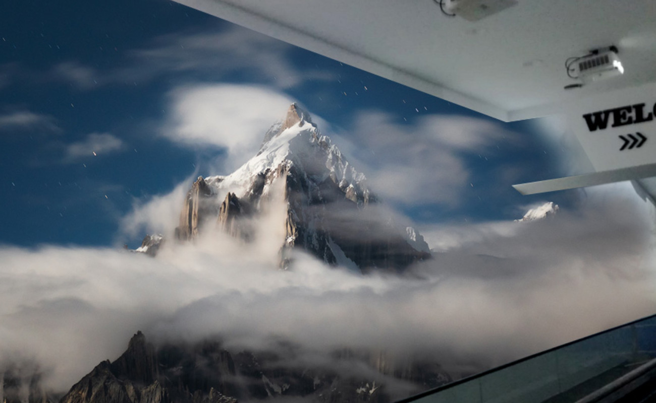 从清晨起,沉浸空间内容呈现:云雾迷蒙,沉淀从容。当有顾客经过时,云雾轻轻拨开,展现出大自然的壮阔。